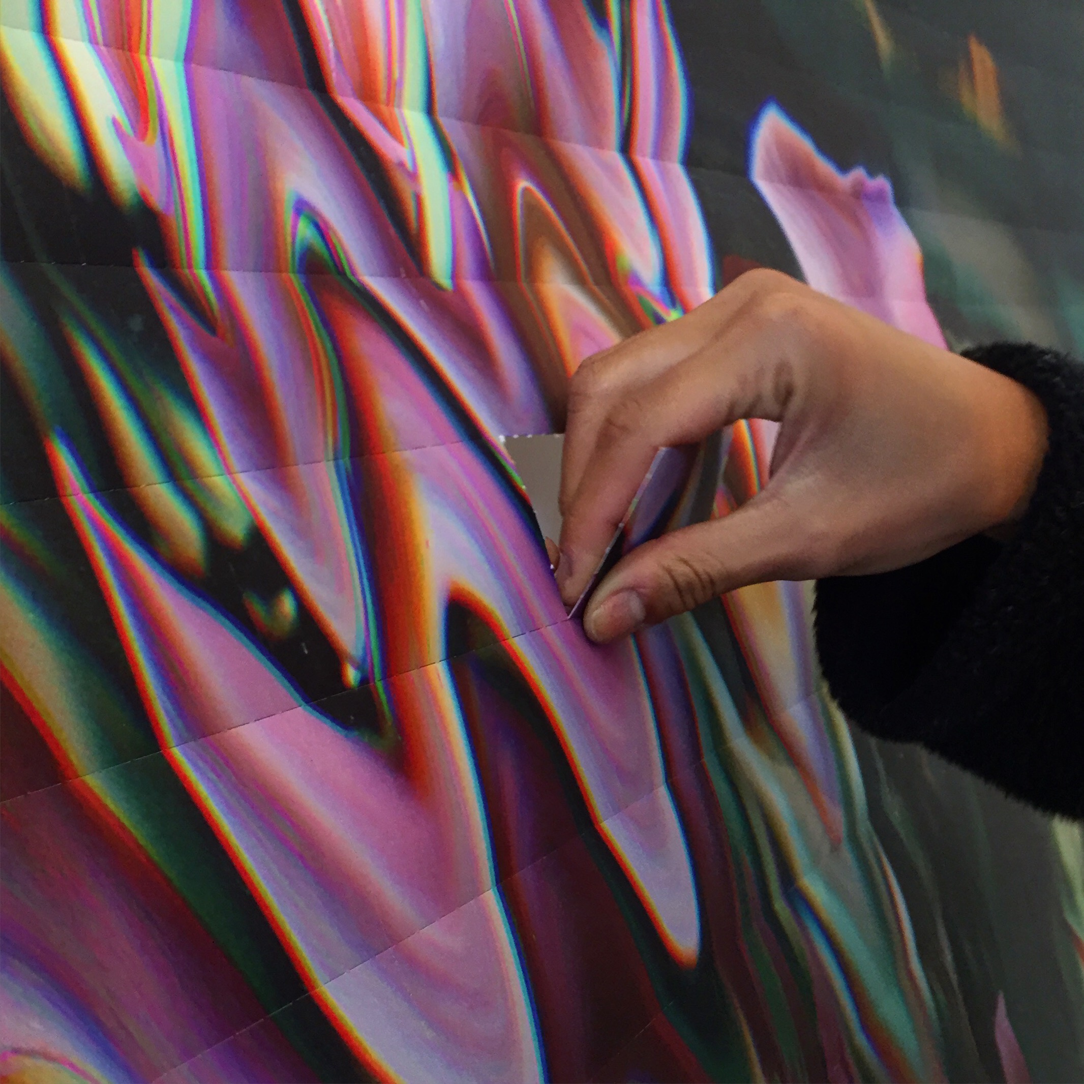 Perforated digital inkjet print, which viewers are invited to remove a section of as a receipt of their attendance.